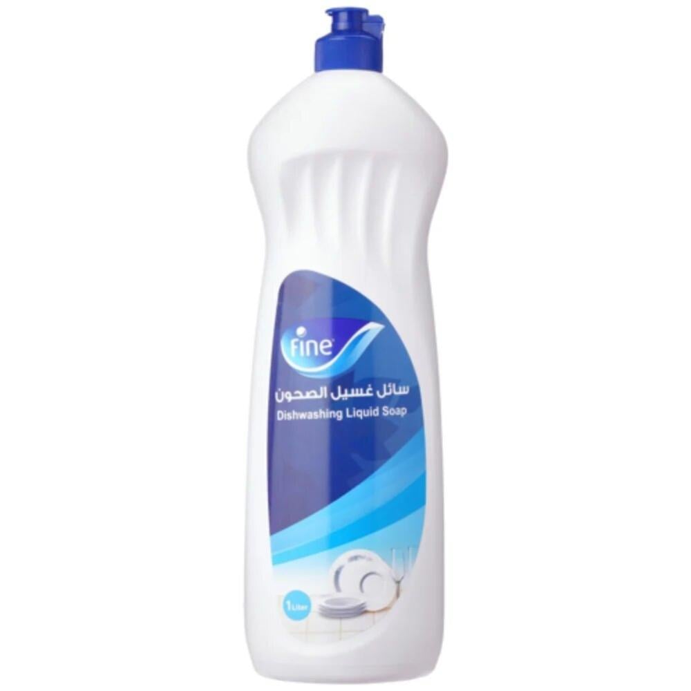 "فاين سائل غسيل الصحون 1 لتر، لتنظيف فعال للأطباق مع قدرة فائقة على إزالة الدهون، يترك الأطباق نظيفة ولامعة مع رائحة منعشة."